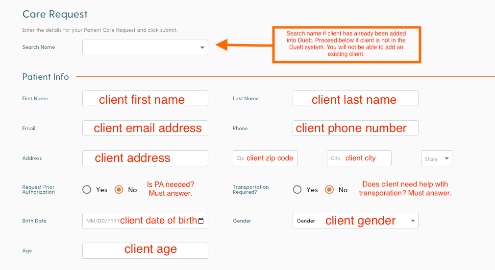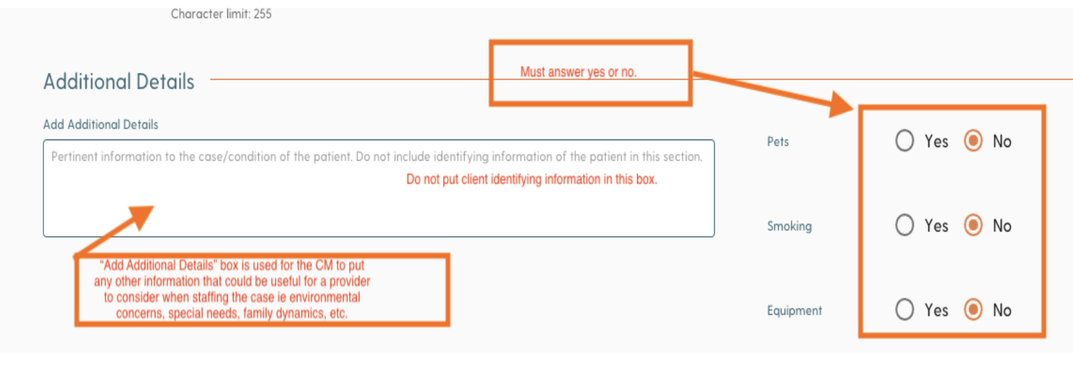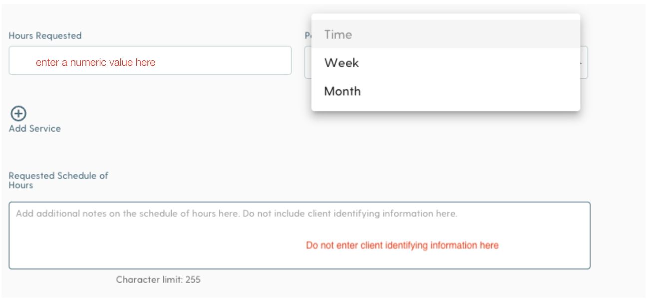 NOTE: In the “request schedule of hours” box CM will enter information related to the needed schedule. For example if a client has dialysis certain days of the week or prefers mornings vs afternoons, or is only available on certain days, or is flexible, etc. this is all information that could be useful for a provider when looking at this section.